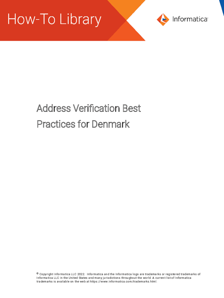 Address Verification Best Practices for Denmark Copyright Informatica LLC 2022. Informatica and the Informatica logo are trademarks or registered trademarks Informatica LLC in the United States and