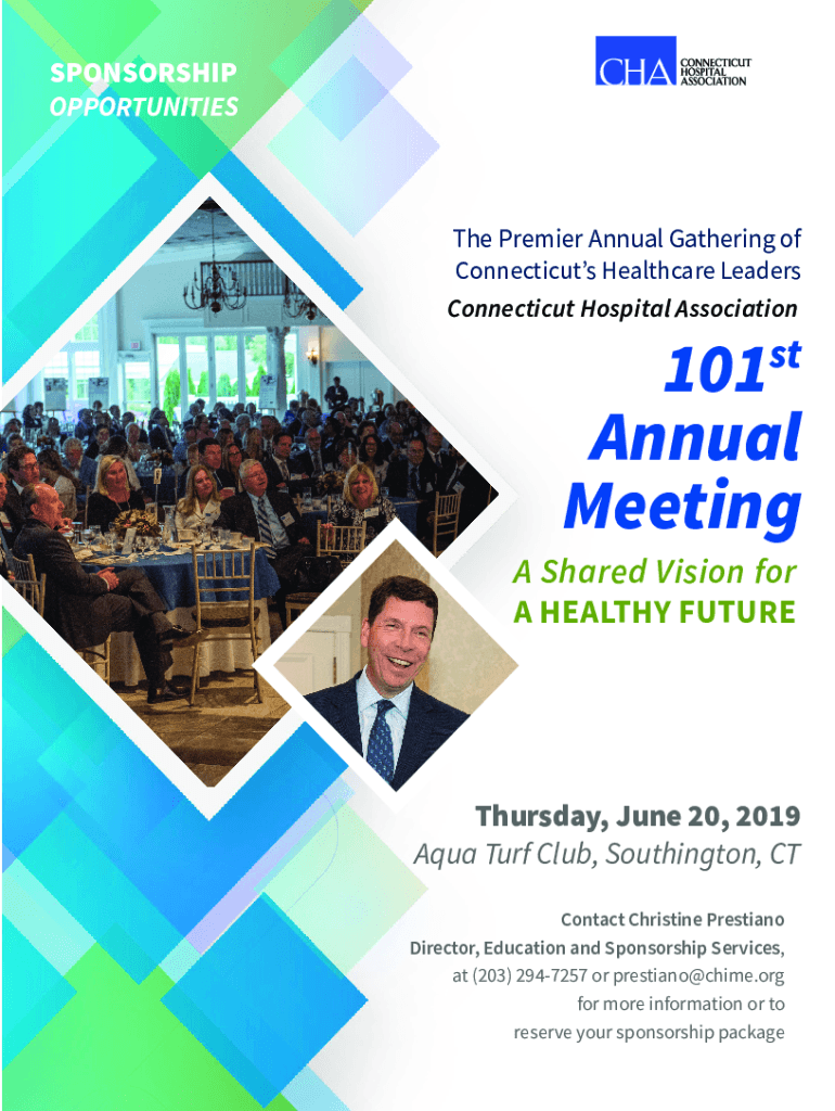 SPONSORSHIP Opportunities Premier Annual Gathering of Connecticut's Healthcare Leaders Connecticut Hospital Association101 Annual Meeting STA Shared Vision for HEALTHY FUTURE Thursday, June 20, 2019,