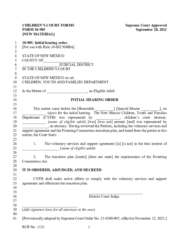 CHILDREN COURT FORMS FORM 10905 [NEW MATERIAL] 1 2 3 4 5 6 7 8 9 10 11 12 13 14 15 16 17 18 19 20 21 22 23 24 25 26 27 28 29 30 31 32 33 34 35 36 37 38 39 40 41Supreme Court Approved September 28,