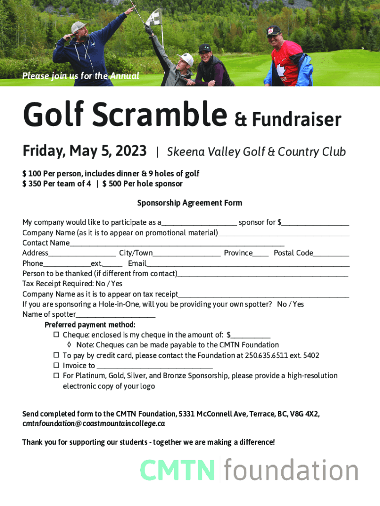 Please join us for the Annually Scramble & Fundraiser Friday, May 5, 2023| Sheena Valley Golf & Country Club 100 Per person, includes dinner & 9 holes of golf $350 Per team of 4 | $500 Per hole sponsor