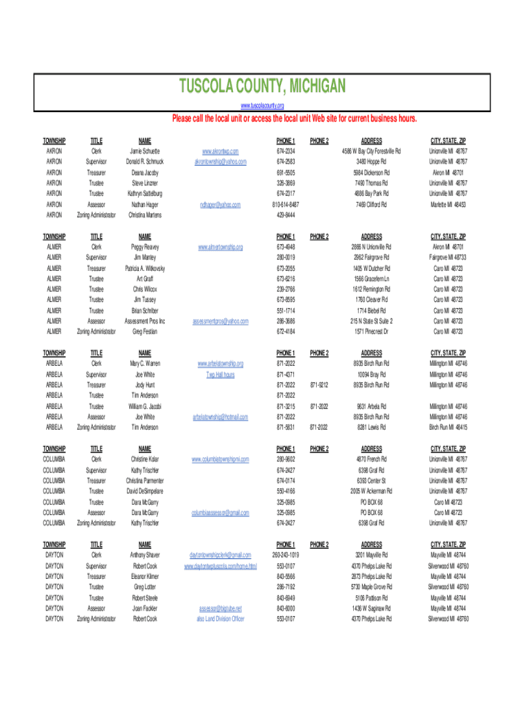 www.tuscolacounty.orgPlease call the local unit or access the local unit Website for current business hours.