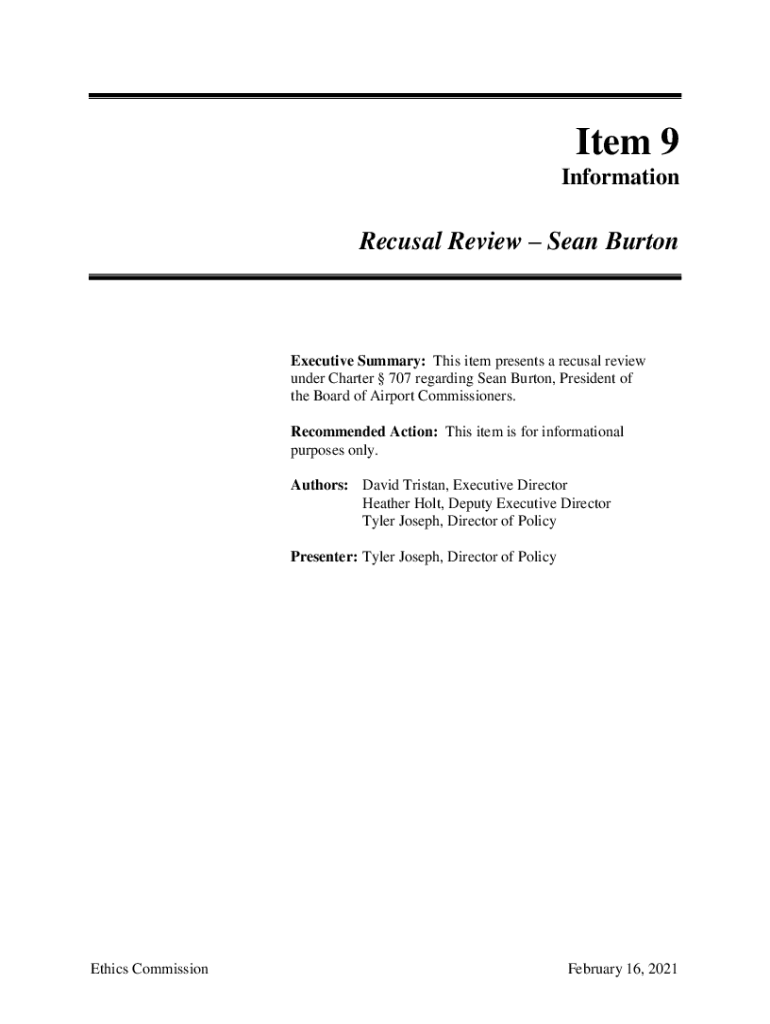 InformationRecusal Review Sean BurtonExecutive Summary: This item presents a refusal review
