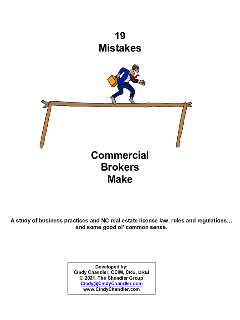 19 MistakesCommercial Brokers Make study of business practices and NC real estate license law, rules and regulations and some good of common sense. Developed by: Cindy Chandler, CCI, CRE, DREW 20,
