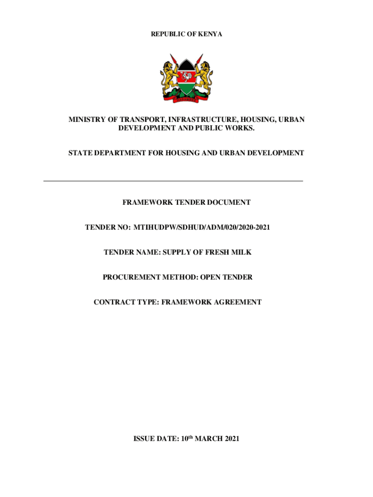 REPUBLIC OF KENYAMINISTRY OF TRANSPORT, INFRASTRUCTURE, HOUSING, URBAN
