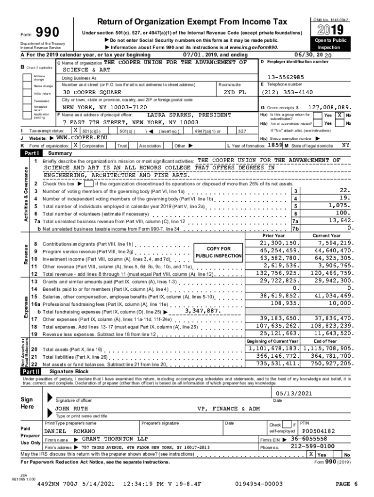Get the free Name of organization THE COOPER UNION FOR THE ADVANCEMENT OF