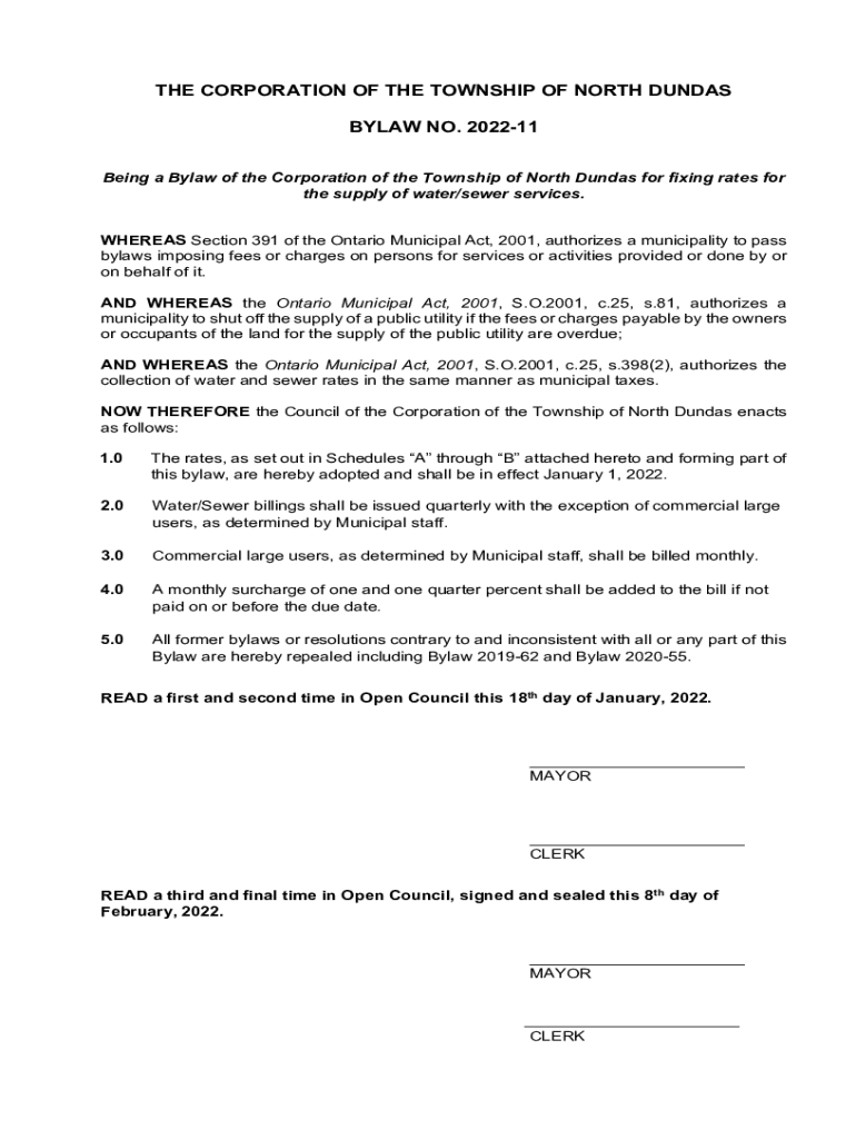 Get the free By-law 2022-11 Fixing rates for the supply of water/sewer ...