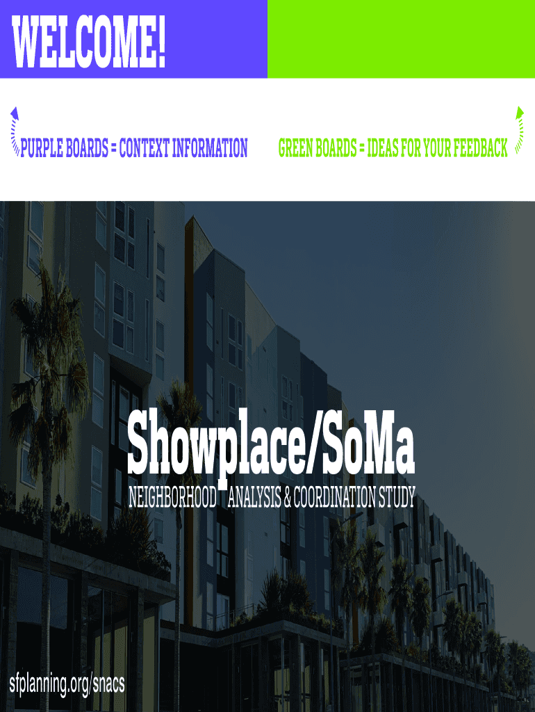 PURPLE BOARDS CONTEXT INFORMATIONGREEN BOARDS IDEAS FOR YOUR FEEDBACKShowplace/SoMaNEIGHBORHOOD ANALYSIS & COORDINATION STUDYsfplanning.org/snacsShowplace/SoMaNEIGHBORHOOD ANALYSIS & COORDINATION