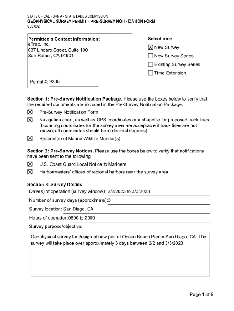 STATE OF CALIFORNIA STATE LANDS COMMISSIONGEOPHYSICAL SURVEY PERMIT RESURVEY NOTIFICATION FORM