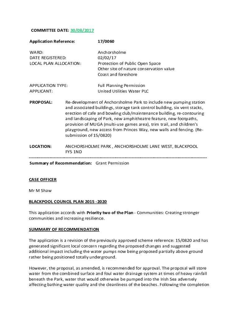 COMMITTEE DATE: 30/08/2017 Application Reference:17/0060WARD: DATE REGISTERED: LOCAL PLAN ALLOCATION:Anchorsholme 02/02/17 Protection of Public Open Space Other site of nature conservation value Coast