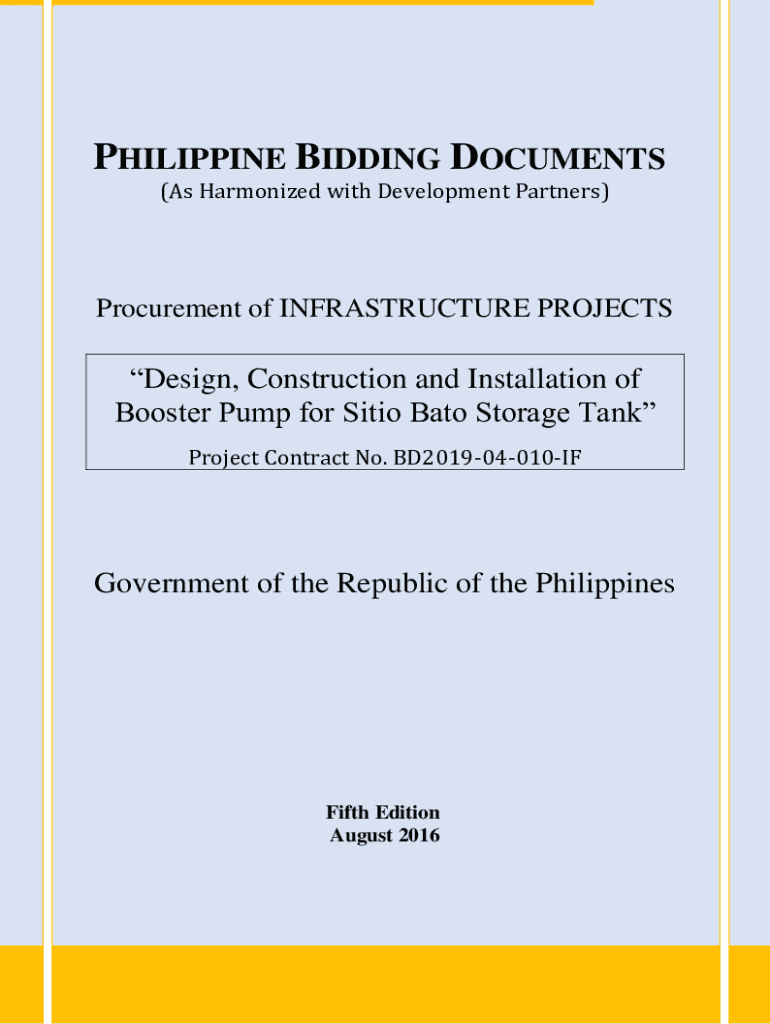 PHILIPPINE BIDDING DOCUMENTS (As Harmonized with Development Partners)Procurement of INFRASTRUCTURE PROJECTSDesign, Construction and Installation of Booster Pump for Site NATO Storage Tank Project