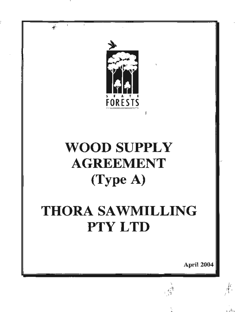 STATEFORESTS c:::\', WOOD SUPPLY AGREEMENT (Type A)THOR SAWMILL ING PTY LTD April 2004TABLE OF CONTENTS 1. 2. 3. 4. 5. 6.7. 8. 9.10. 11. 12. 13. 14. 15. 16. 17. 18. 19. 20.21. 22. 23. 25. 26. 27.