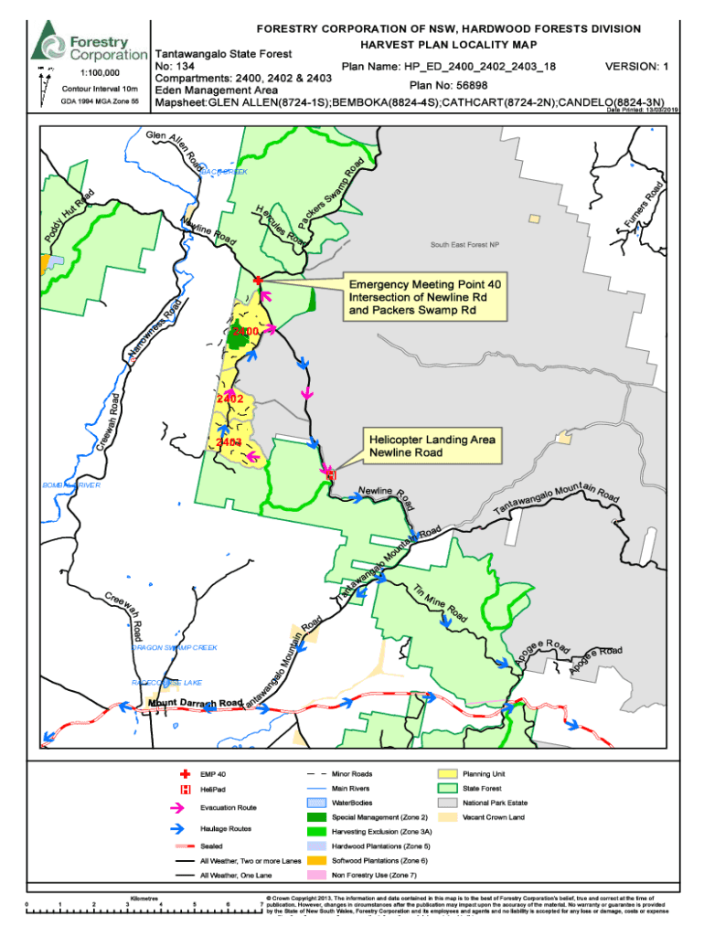 FORESTRY CORPORATION OF NSW, HARDWOOD FORESTS DIVISIONForestry Corporation GN MNV1:100,000Contour Interval 1Orn GDP 1994 MGA Zone 55HARVEST PLAN LOCALITY MAP Tantawangalo State Forest No: 134 Plan
