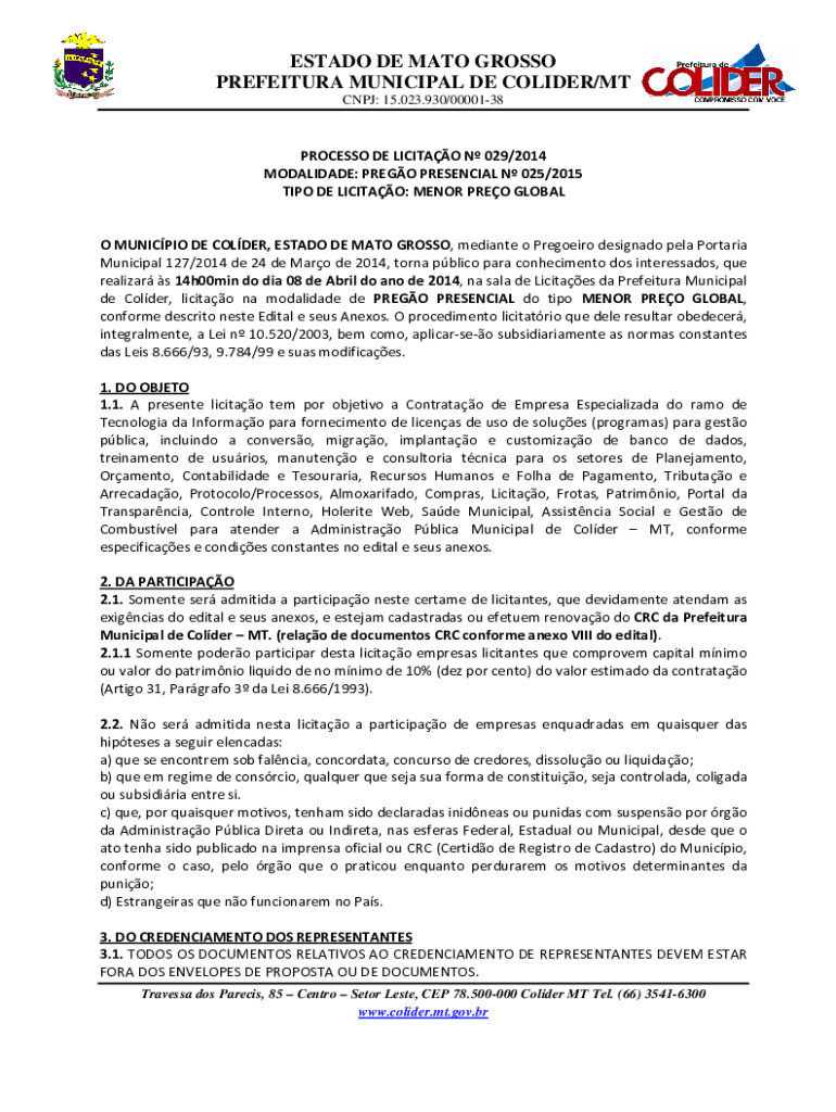 CNJ: 15.023.930/0000138PROCESSO DE LICIT AO N 029/2014