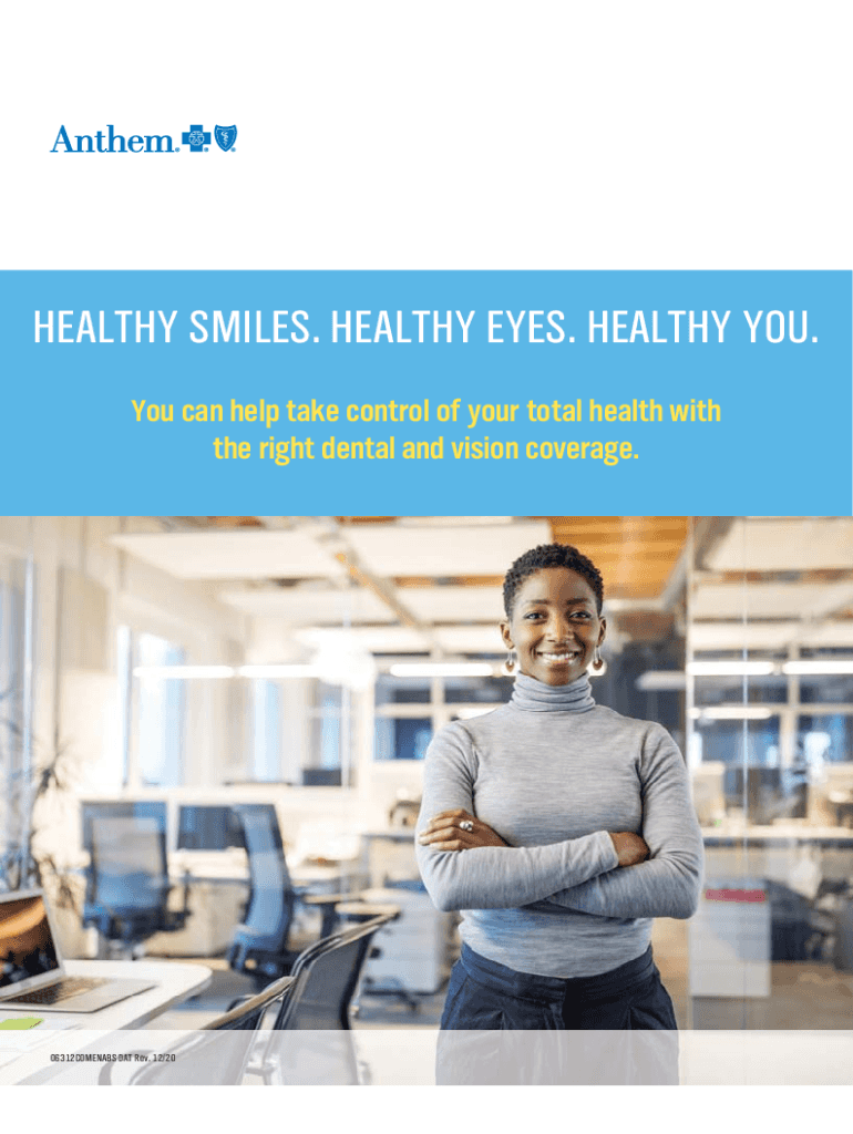 HEALTHY SMILES. HEALTHY EYES. HEALTHY YOU. You can help take control of your total health with the right dental and vision coverage.06312COMENABS DAT Rev. 12/20Regular dental checkups are about more