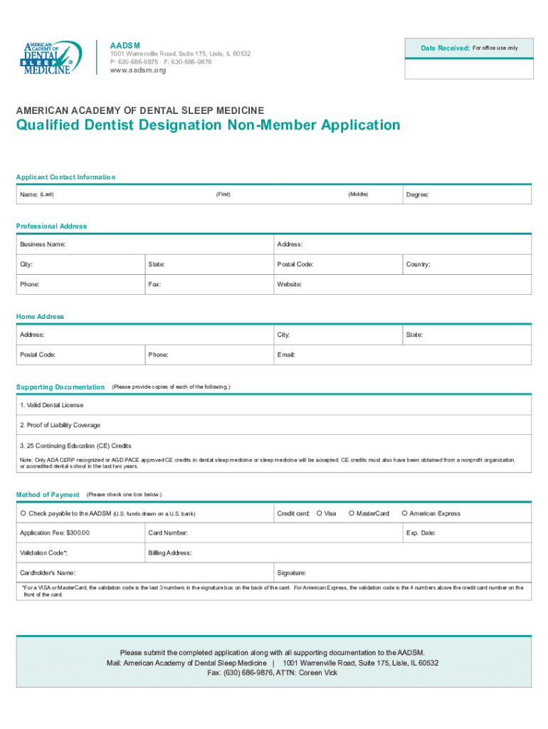 P: 6306869875 F: 6306869876For office use only.AIDS. American ACADEMY OF DENTAL SLEEP MEDICINEQualified Dentist Designation Nonmember