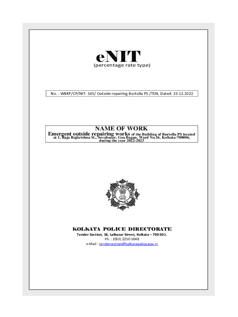 (percentage rate type)No. BKP/CP/NIT 165/ Outside repairing Burton PS /TEN, Dated:: 19.12.2022NAME OF WORK