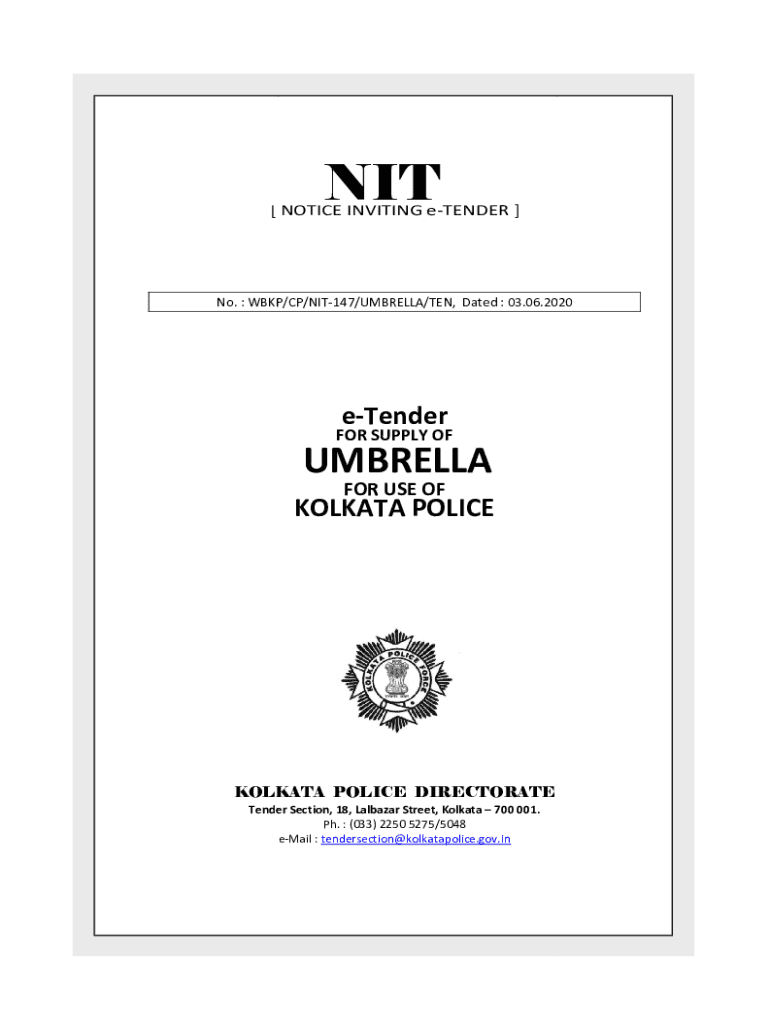 [NOTICE INVITING tender]No. BKP/CP/NIT147/UMBRELLA/TEN,
