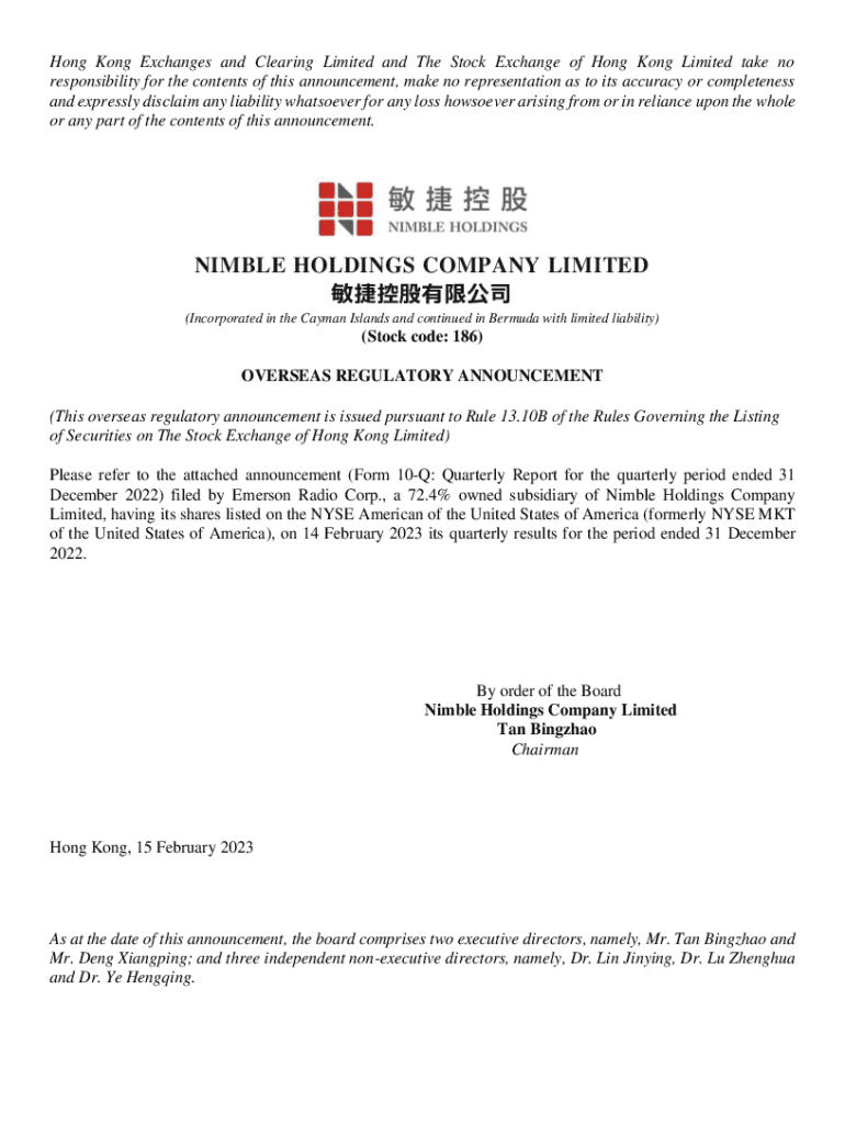 Email, fax, or share your nimble holdings company limited form via URL. You can also download, print, or export forms to your preferred cloud storage service.