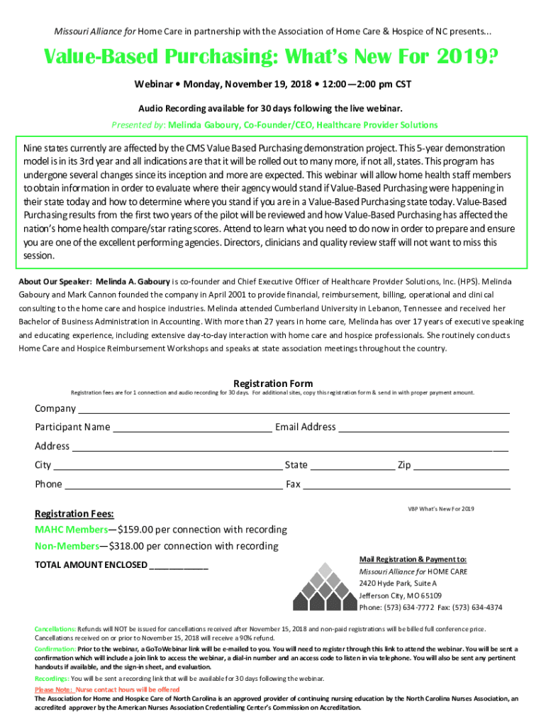 Missouri Alliance for Home Care in partnership with the Association of Home Care & Hospice of NC presents... Valuated Purchasing: What's New For 2019? Webinar Monday, November 19, 2018 12:002:00 pm