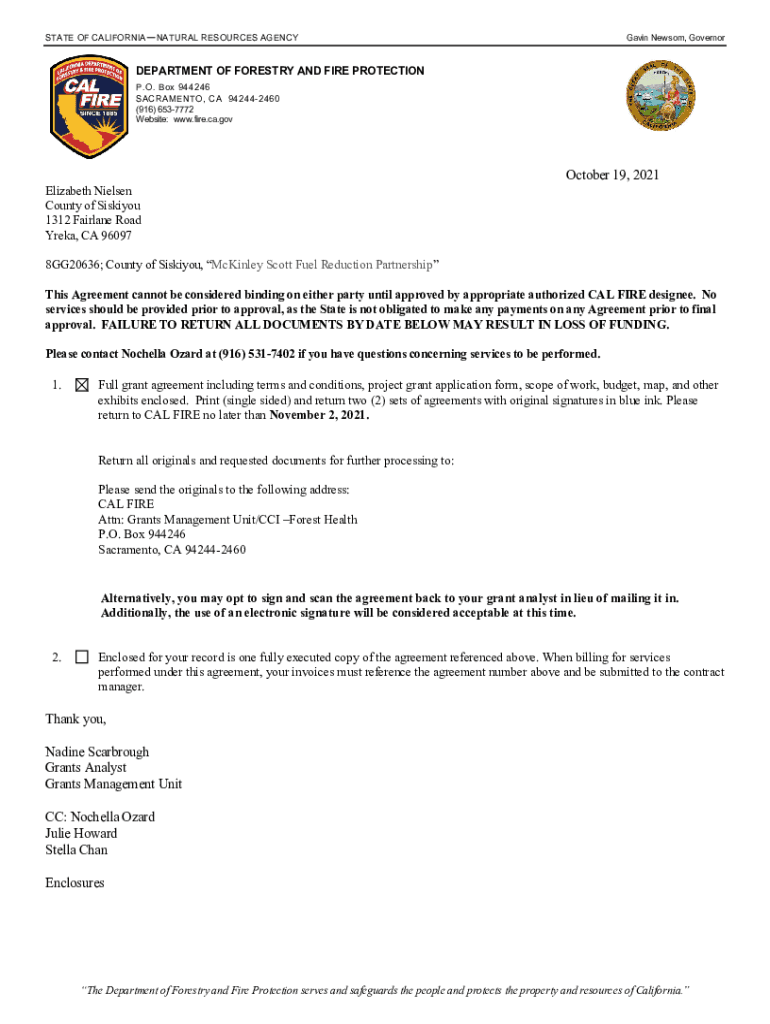 STATE OF CALIFORNIANATURAL RESOURCES AGENCY Gavin Newsom, GovernorDEPARTMENT OF FORESTRY AND FIRE PROTECTION