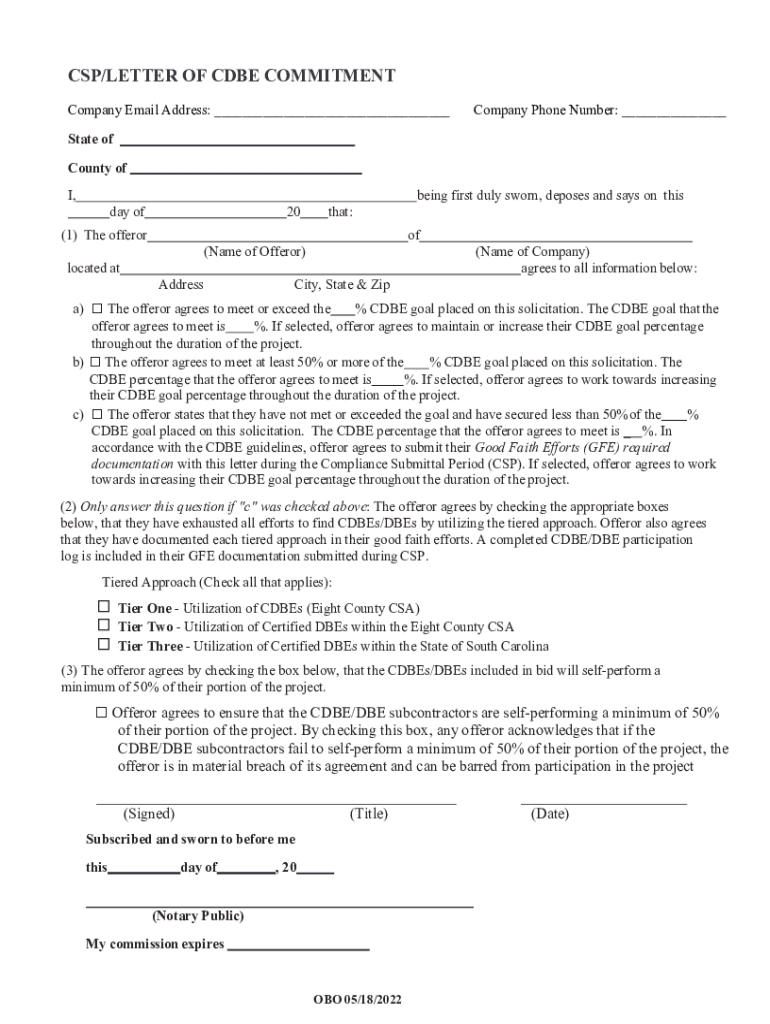 CSP/LETTER OF CUBE COMMITMENT Company Email Address: ___Company Phone Number: ___State of County of I, day of20(1) The offer or located at that:of(Name of Offer or) Address being first duly sworn,