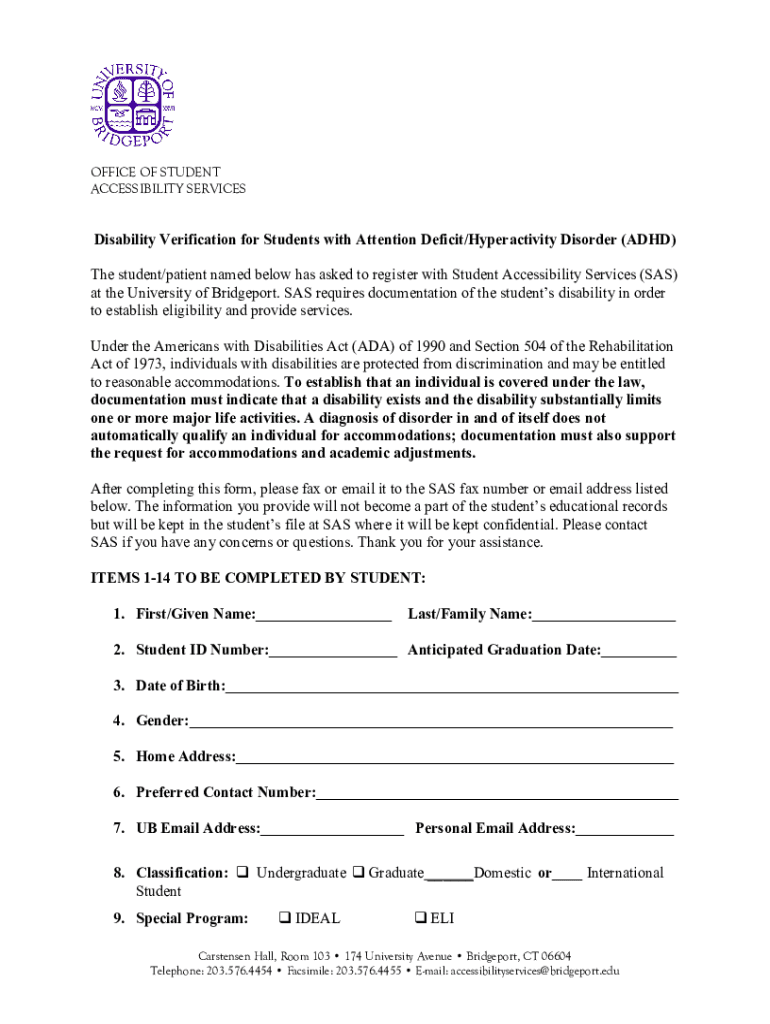 Information required on ub-ds-students-with-adhd-formpdf includes details of the ADHD diagnosis, recommended accommodations, and relevant medical history.