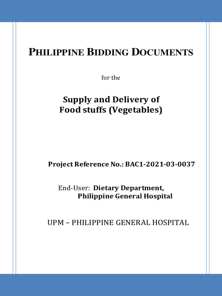 PHILIPPINE BIDDING DOCUMENTS for resupply and Delivery of Food stuffs (Vegetables)Project Reference No.: BAC12021030037 Endured: Dietary Department, Philippine General Hospital PHILIPPINE GENERAL