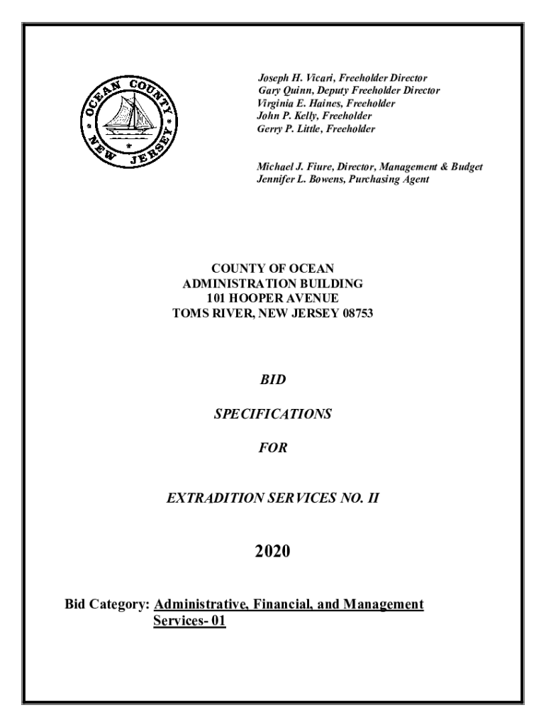 Joseph H. Vicar, Freeholder Director Gary Quinn, Deputy Freeholder Director Virginia E. Haines, Freeholder John P. Kelly, Freeholder Gerry P. Little, Freeholder Michael J. Figure, Director, Management