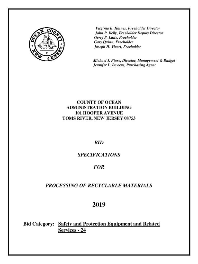 Virginia E. Haines, Freeholder Director John P. Kelly, Freeholder Deputy Director Gerry P. Little, Freeholder Gary Quinn, Freeholder Joseph H. Vicar, Freeholder Michael J. Figure, Director, Management