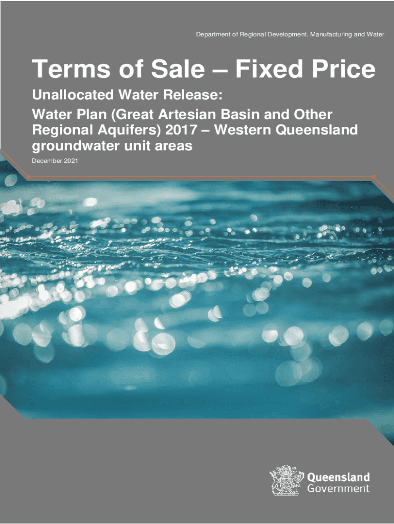 Department of Regional Development, Manufacturing and Waterbirds of Sale Fixed Price Unallocated Water Release: Water Plan (Great Artesian Basin and Other Regional Aquifers) 2017 Western Queensland