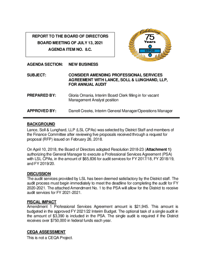 AGENDA ITEM NO. 8. C.AGENDA SECTION:NEW BUSINESSSUBJECT:CONSIDER AMENDING PROFESSIONAL SERVICES