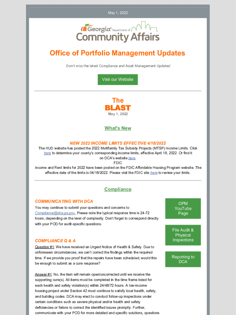May 1, 2022Office of Portfolio Management Updates Don\'t miss the latest Compliance and Asset Management Updates! Visit our WebsiteTheBLAST May 1, 2022What\'s New 2022 INCOME LIMITS EFFECTIVE 4/18/2022