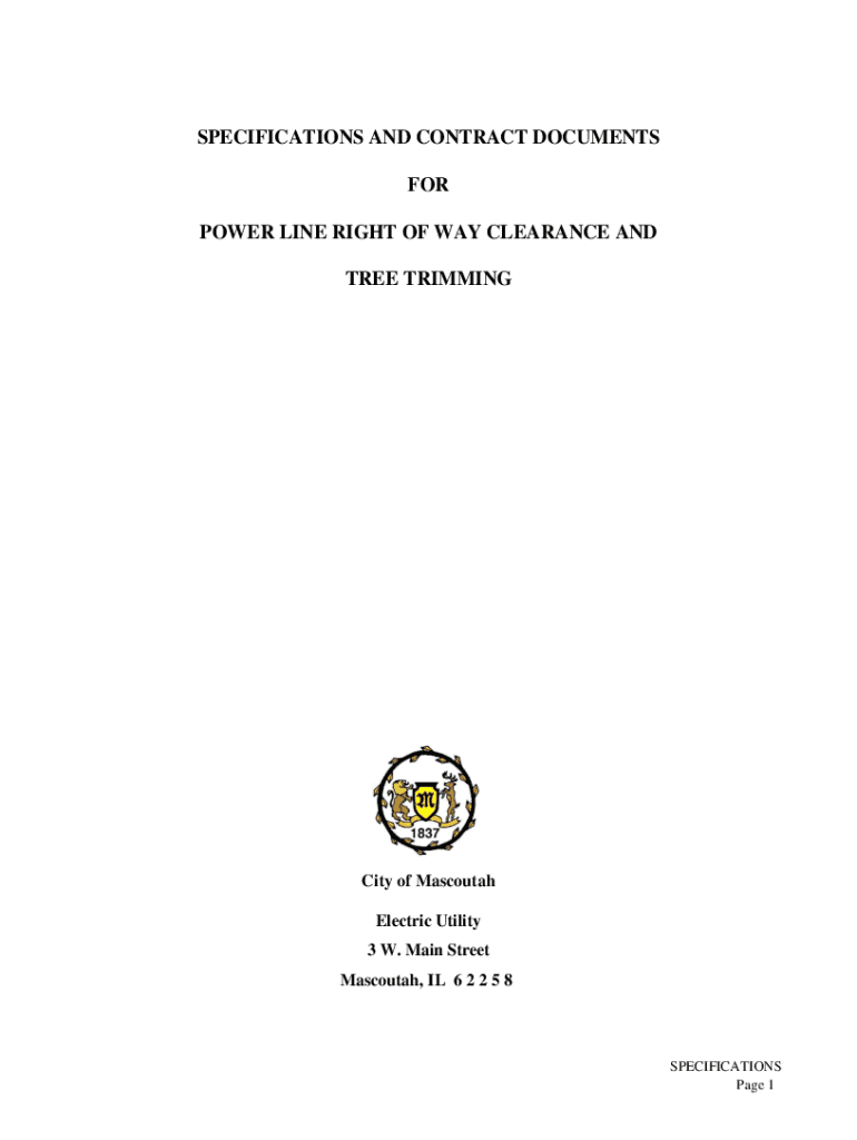 SPECIFICATIONS AND CONTRACT DOCUMENTS FOR POWER LINE RIGHT OF WAY CLEARANCE AND TREE TRIMMINGCity of Mascot Electric Utility 3 W. Main Street Mascot, IL 6 2 2 5 8SPECIFICATIONS Page 1Summary Description: