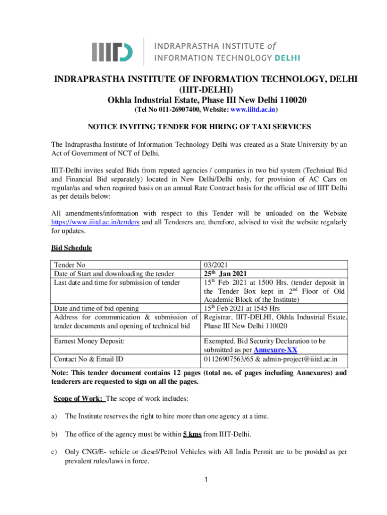 Get the free notice inviting tender for hiring cab services - IIIT-Delhi