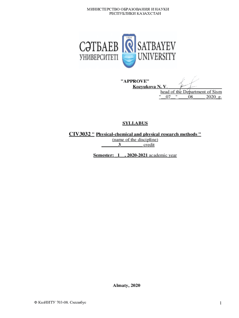 \” __07__\” ___08___ 2020_g.SYLLABUSCIV3032 \” Physical chemical and physical research methods \”