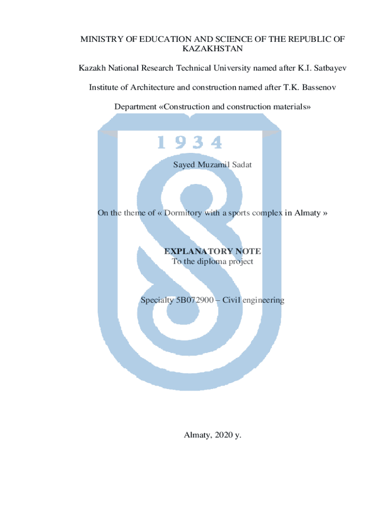 MINISTRY OF EDUCATION AND SCIENCE OF THE REPUBLIC OF KAZAKHSTAN Kazakh National Research Technical University named after K.I. Stayed Institute of Architecture and construction named after T.K. Assent