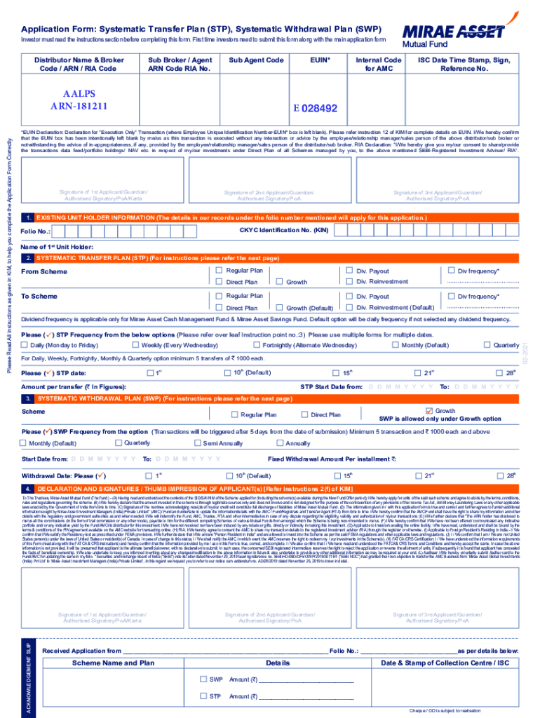 Application Form: Systematic Transfer Plan (STP), Systematic Withdrawal Plan (SVP)Investor must read the instructions section before completing this form. First time investors need to submit this