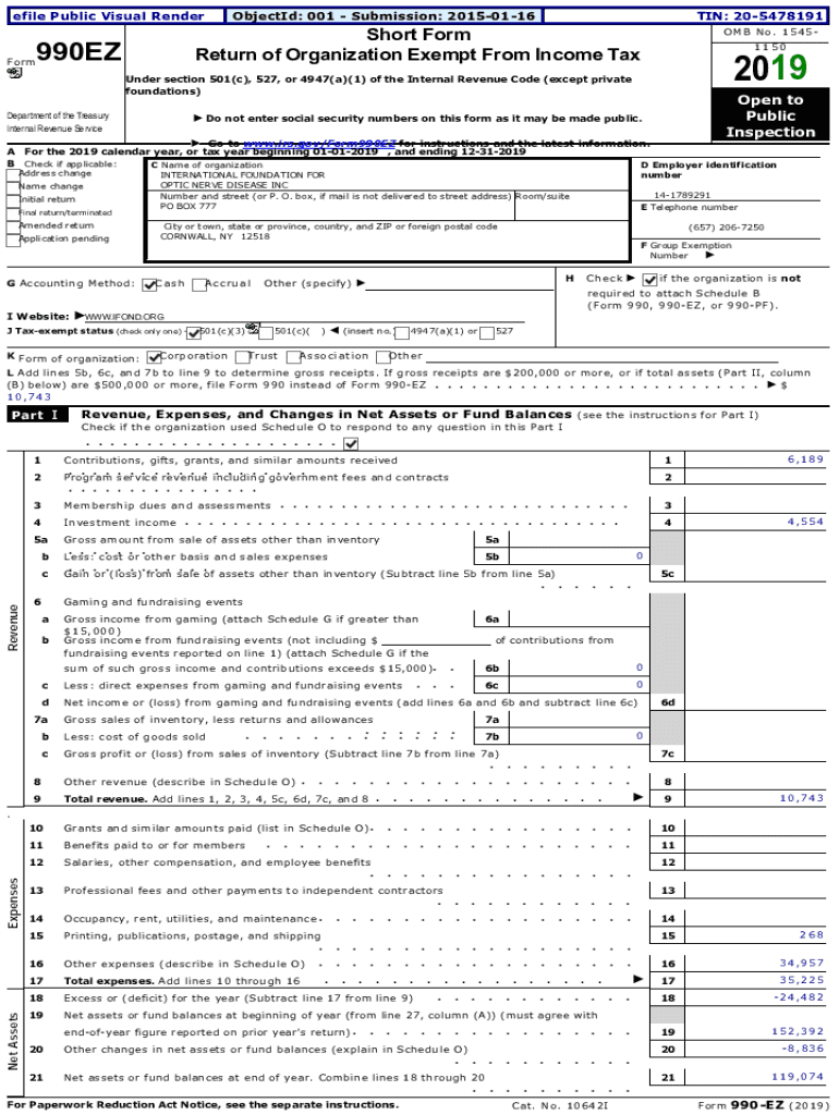 EfilePublicVisualRenderFormObjectId:001Submission:20150116TIN:205478191ShortForm ReturnofOrganizationExemptFromIncomeTax990EZOMBNo.1545 11502019Undersection501(c),527,or4947(a)(1)oftheInternalRevenueCode(except
