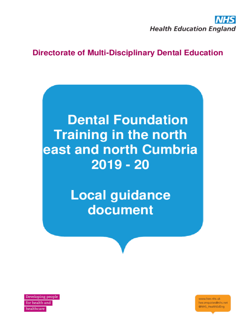 Directorate of Multidisciplinary Dental EducationDental Foundation Training in the north-east and north Cambria 2019 20 Local guidance document 15There is something I don't know that I am supposed