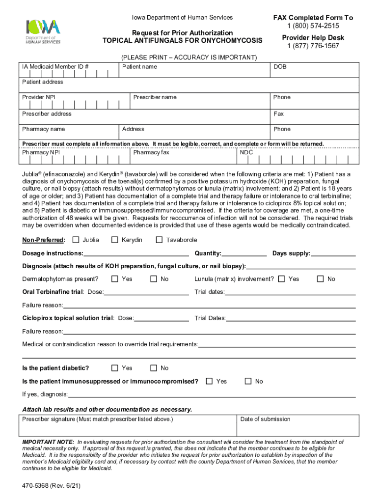 TOPICAL ANTIFUNGALS FOR ONYCHOMYCOSISIA Medicaid Member ID #(PLEASE PRINT ACCURACY IS IMPORTANT)