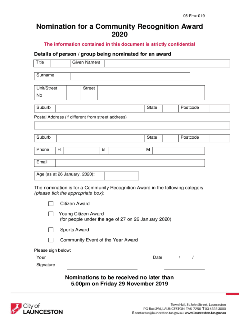 Nomination For A Community is not the form you're looking for?Search for another form here.