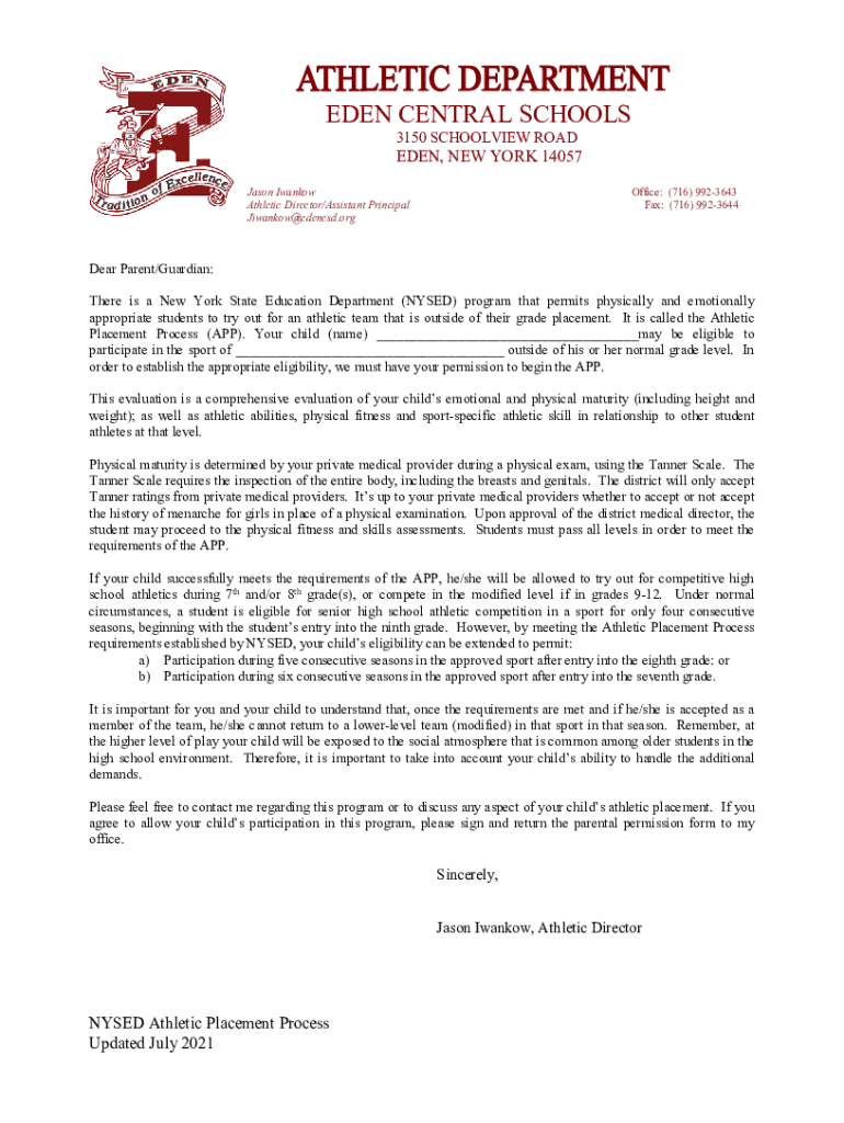Get the free Phys. Ed. - 6th to 12th / Overview - Eden Central School District