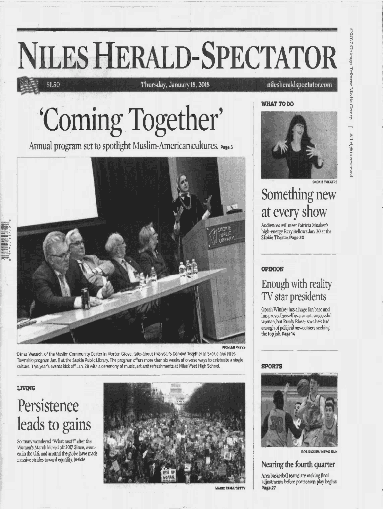 O piles HERALD SPECTATOR $1.50nilesheraldspectator.com Thursday, January 18, 2018WHAT TO DO\'Coming Together\' Annual program set to spotlight Muslim American cultures. Page 5SKOKIE THEATRESomething