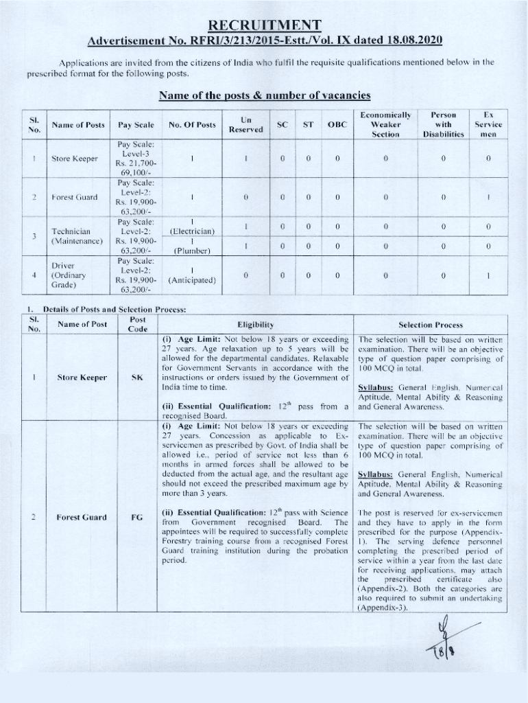 Format of the Application Form To, Affix self attested passport size photographs Director Rain Forest Research Institute P. Box No. 126, Dean, Total Jorhat785001, AssamApplication for the post of