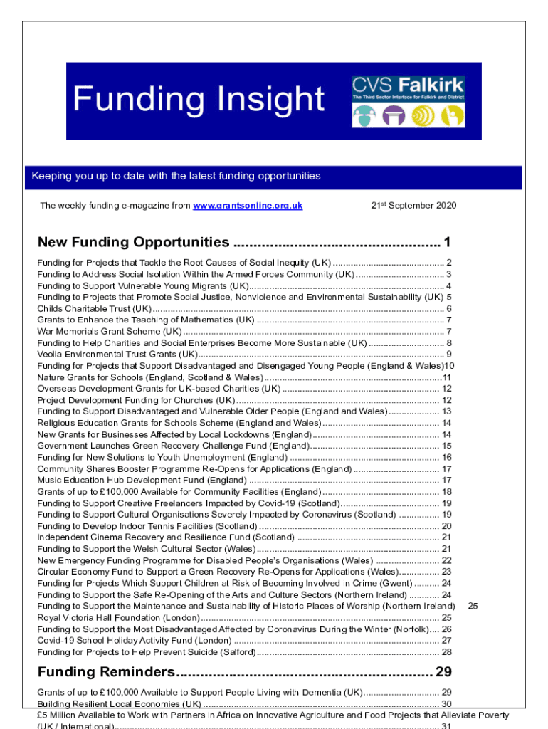Keeping you up to date with the latest funding opportunities The weekly funding magazine from www.grantsonline.org.uk21st September 2020New Funding Opportunities ...................................................