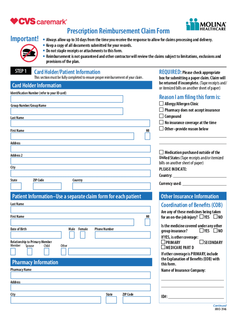 Important!STEP 1Prescription Reimbursement Claim Form Always allow up to 30 days from the time you receive the response to allow for claims processing and delivery. Keep a copy of all documents submitted