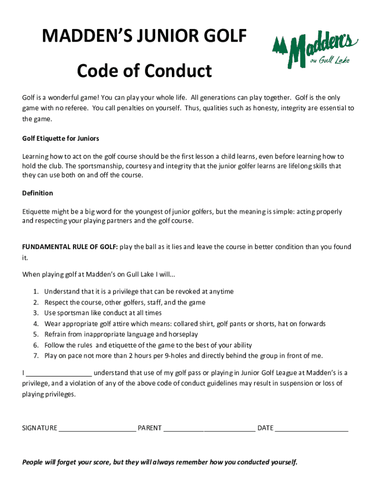 Get the free MADDEN'S JUNIOR GOLF Code of Conduct