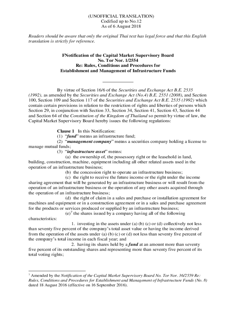 (UNOFFICIAL TRANSLATION) Codified up to No.12 As of 6 August 2018 Readers should be aware that only the original Thai text has legal force and that this English translation is strictly for reference.