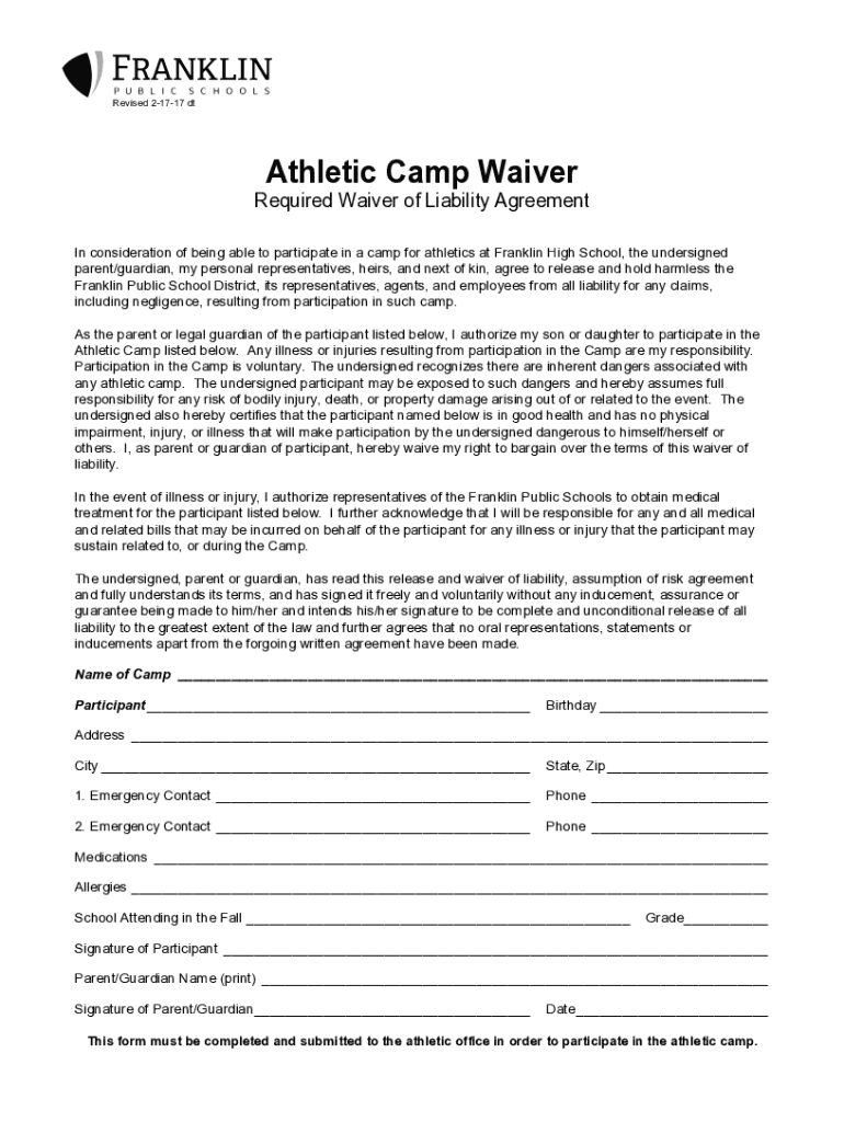 Parents or legal guardians of the boys attending the camp are required to fill out the necessary forms and waivers for participation.