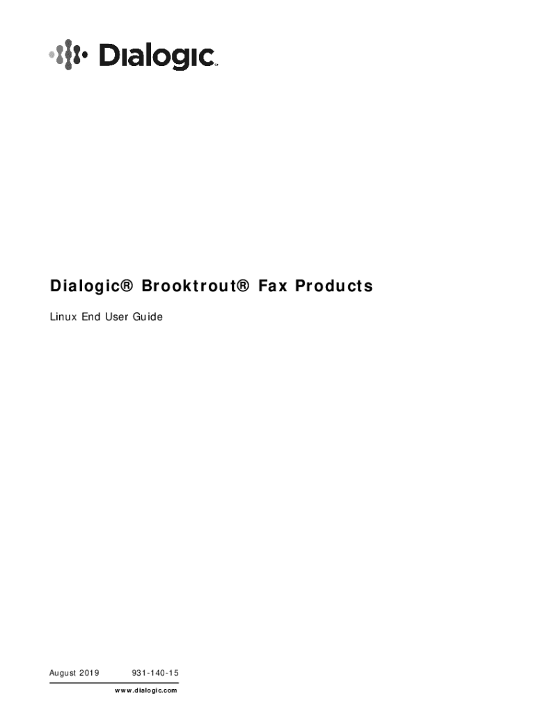 Dialog Brook trout Fax Products Linux End User Guide August 201993114015 www.dialogic.comCopyright and Legal Notice Copyright 19982019 Dialog Corporation. All Rights Reserved. You may not reproduce